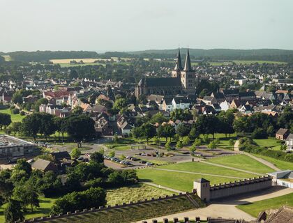 Xanten verbindet römische Geschichte mit lebendigem Stadtleben und viel Natur. Zwischen Altstadtgassen und Rheinauen warten echte Highlights wie der Archäologische Park mit dem LVR-RömerMuseum, der mächtige St.-Viktor-Dom am Markt, die Kriemhildmühle und lauschige Plätze rund um die Wallanlagen. Wer raus ins Grüne möchte, findet an der Xantener Nord- und Südsee ideale Wege zum Spazieren und Radeln und Angebote für Wassersportler: Die nahen Ortsteile wie Lüttingen, Vynen, Wardt, Birten, Marienbaum und Obermörmter bringen ihren eigenen Charme mit Kapellen, Höfen und viel Vereinsleben. Xanten ist einladend, geschichtsträchtig und vielfältig. Eine geschichtsträchtige Stadt, die mit jedem Besuch neue Details entdecken lässt.